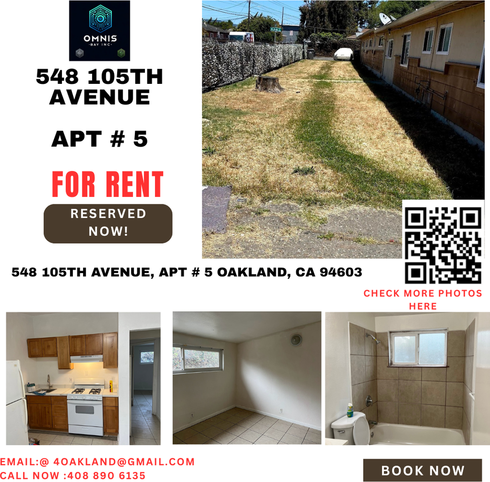 Ground Floor SPACIOUS 1BR/1BT with a Separate HALL in Oakland. Both Bedroom and Hall are SPACIOUS. This is a 15 unit Garden Style, Apartment Complex with big central Courtyard with Concrete and grass spaces. Lot size almost 1 Acre shared amongst all units. Ample private parking at Back. All units are Ground floor units. About the Complex: Open area central courtyard with concrete and grass areas,. The property encompasses nearly 1 acre, providing ample space for all residents. Property Amenities: Rental Details: Deposit: One month's rent required Minimum Lease: 6 months Proof of Income or subsidy Required Section 8 voucher Welcome Bank statement Income pay stubs Additional Information: Please check photos and Videos Photos :https tinyurl com 105th5photos Videos : https www youtube com shorts v74mm_oTUa0 Family-oriented environment Neighborhood: Experience a peaceful and friendly community with monthly pest inspections and regular maintenance for your comfort and convenience. Tenant to take GAS and ELECTRICITY utilities in their name and pay up to a max of $150 per month for it. Anything more than $150 per month in utility bill is reimbursed in full by Landlord. Tenant GAS + Electric Bill is capped at $150 per month. It will mostly be around $100 except in Winter. Only 1 Parking Spot Included in RENT We offer Discounts of upto $550 per month in rent, we assume that you qualify for these offers See all details at below URL including a online form to upload docs. https airtable com appkxoVeoPmvd64Ny pagYkHtqliVKTpD7f form Contact Information: Contact Us : Email: **** SMS/Phone: (408) 890-6135 Unit amenities Disposal, Heat, Refrigerator, Tile floors, Wheelchair accessible