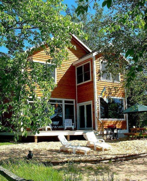 Be our guest at one of the newest Beachfront Property MI vacation getaways offered by Blue Lakes Vacation Rentals. This cottage-style home is brand new for summer 2004 and features 2,000 sq.ft. of living space with four large bedrooms and two full bathrooms. Relax on the back deck and enjoy spectacular panoramic views of Upper Herring Lake, breathtaking sunsets or maybe catch a glimpse of the eagle that nests nearby. Whatever your enjoyment, this home has it all. The Beach House on all-sports Upper Herring Lake offers 80 feet of private sandy beach frontage just 40 feet off the back deck. As an extra bonus we will include the use a Pontoon boat free of charge. Just a couple of miles from awesome Lake Michigan beaches and minutes south of Frankfort, Benzonia and Beulah for shopping, dining and sightseeing.