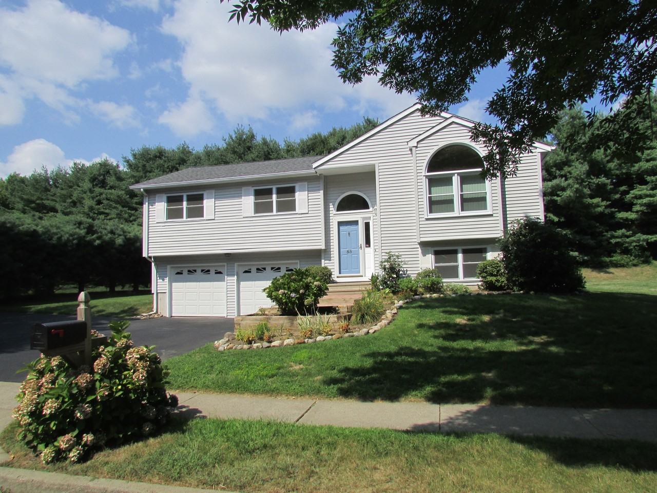 Bright and airy Raised Ranch on quiet cul de sac location. Beautiful living room with palladian window and fireplace. Dining room with sliders to deck. Kitchen with stainless appliances. Master bedroom with full bath. 2 additional bedrooms and full hallway bath. Lower level has storage and laundry room. 2 car attached garage. Oversize driveway and beautiful level yard.