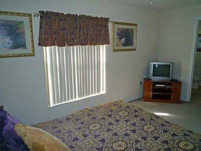 (RLNE184844) Your Orlando vacation can be relaxing and worth spending, if you choose this this beautiful 4-bedroom, 3-bedroom home located in Tuscan Ridge Community to be your choice for your lodging option. The home comes with attractive and beautiful surroundings. This lovely home has a spacious area of 2,084 square feet and holds up cozy bedrooms, bathrooms, living, dining and kitchen areas. The bedrooms consist of 1 King Master Suite, 1 Queen Master Bedroom, 1 further Queen Bedroom and 1 Twin room. All bedrooms have cable-ready TVs. This home can accommodate up to 8 guests fittingly. It offers an open great entrance adjoining the kitchen, dining and living areas. The furnishings are modern and skillfully designed to suit modern preferences. Free internet access is provided, as well as free local and international phone call services. On the formal sitting area you will find the comfortable sofa, TV, DVD player and VCR. Plus, this vacation villa allows your furry friend to enjoy the stay since, as the home is pet friendly. The kitchen also is fully equipped with necessities (appliances and utensils) making it a lot easier for you to prepare your scrumptious dish. The kitchen comes with a breakfast bar and nook too. You can take a cool dip in the private pool or toast in the spa -- truly relaxing! The pool area has a covered lanai with lounge chairs and table. Come and enjoy a fantastic vacation near Orlando! Yes, NIGHTLY RATES for Orlando vacations available, call Discount Vacation Rentals Online.