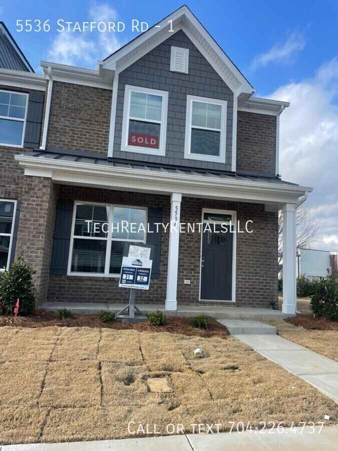 Spacious End-Unit Townhome in a Prime Charlotte Location! Welcome to 5536 Stafford Road, a brand-new end-unit Alston townhome designed for modern comfort and convenience! This never-lived-in home offers a spacious 2-story layout with an open-concept main floor, perfect for entertaining. Enjoy a cozy breakfast area that opens to the patio, an attached rear-load garage, and a sleek kitchen that will soon be equipped with brand-new stainless steel appliances, including a washer and dryer. Upstairs, the primary suite boasts an ensuite bath, while two additional bedrooms share a full hall bath. As an end-unit home, you'll enjoy extra privacy and natural light. Located in a thriving community with a courtyard, this home is just a 5-minute walk to Harris Teeter, within 1 mile of I-485, and close to top-rated schools, shopping, dining, and entertainment. With easy access to everything Charlotte has to offer, this is the perfect place to call home! Don't miss out—schedule a tour today!