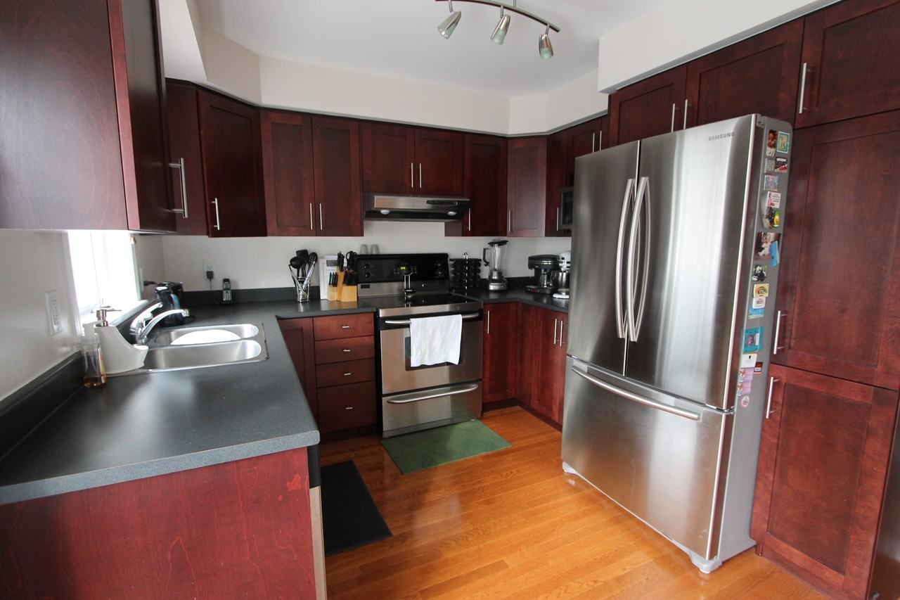 Three level townhome with private backyard. Enjoy BBQing this summer off the second level balcony. Two bedrooms, each with its own full ensuite bathroom. Walking distance to St. Laurent mall, the transitway, CSEC and CSIS. Available July 1st, 2015.