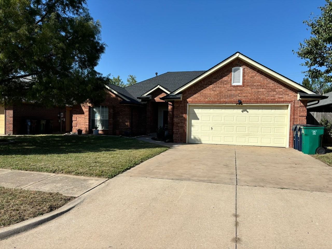 Spacious & Comfortable 4 bedroom, 2 bath home for Lease, Move in ready! This home has so many great features, living room has a fireplace and opens to dining/kitchen area; Large kitchen with plenty of cabinets and counter space. Great storage and closet space throughout. Master bedroom is separate from others and has a roomy on-suite bath with double sink vanity, make up area, separate shower and tub. Relax on your large covered back patio, perfect for entertaining. Storm shelter in garage. Pets must be approved in advance, additional fees apply. Great location with easy access to Tinker AFB and to the entire OKC metro. Take a look today!