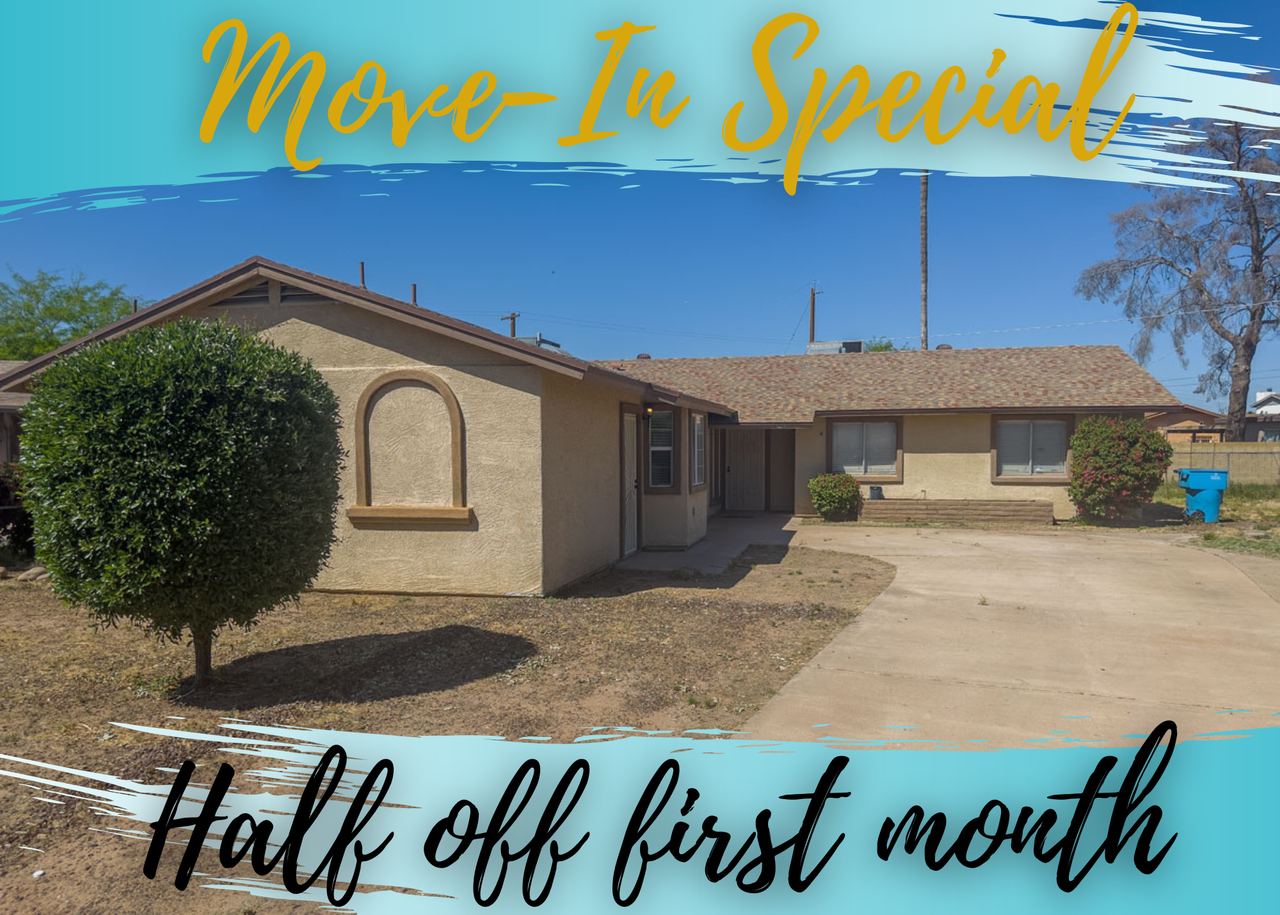 MOVE IN SPECIAL. HALF OFF FIRST MONTH. 5 Bedrooms. 4 Bathrooms. 3 of the bedrooms have en-suite baths. No HOA. Updated Kitchen with Granite. Stainless Fridge Included. Ceiling Fans Throughout. Very Large Rooms. Bathrooms have separate tub/shower. Extremely Unique Opportunity. Several LARGE Rooms. Price does not include Rental Tax. Pet Deposits $300 each. Minimum 12 Month Lease. Apply at www AZHouse Rent Call to view.
