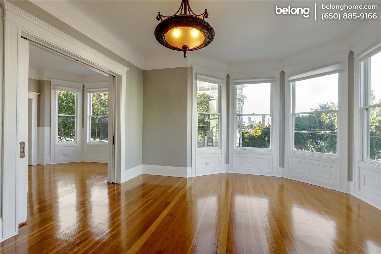 Historic building in a fantastic Hayes Valley location is the setting for the next chapter of your life - come and see your future home! Gorgeously renovated to perfection, your dream home highlights a corner unit location, ensuring splendid views of the city from every room. Period details have been preserved creating an elegant interior that blends old world charm with the new. This home has 3 spacious bedrooms to choose from, and a bonus room that can be a home office or study. Two full bathrooms are available, including a split bath with a claw-foot tub and vanity. The formal dining room opens up to a sunshine-filled living room and a chef's kitchen fitted with stainless steel appliances including a Viking range. Remodeled tile backsplash, bespoke white cabinetry, and a breakfast nook! A separate laundry room comes with washer/dryer units and ample storage for linen. This home has a Walkscore of 99 and is minutes away from the Mission, Castro, SOMA, public transport options, tech shuttles, the Wiggle, and more.