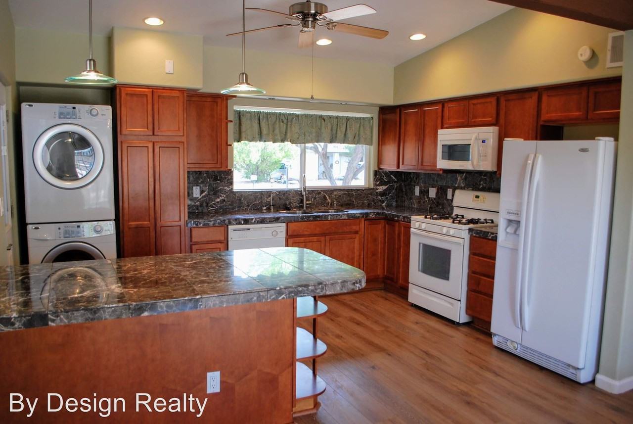 Midtown 3 Bed 2 Bath Mid-Century Brick Home - Midtown 3 Bed 2 Bath Mid-Century Brick Home. 1377 SQ FT. Spacious updated kitchen has maple cabinets, granite counters, breakfast bar with wine fridge and recessed lighting. Vaulted wood beam ceiling living room and dining area are separated by two-way floor to ceiling fireplace. Furnace-A/C & Water Heater all less than 1 year old. Hall Bath recently updated with new fixtures, lighting, pedestal sink, and tile shower. All 3 Bedrooms also have vaulted wood beam ceilings. The large fenced yard just got corrugated metal fencing to add to the privacy. Covered parking, Full-Size Washer/Dryer, Outdoor storage. This home is offered as NON-SMOKING. Pets subject to owner approval. Pet Policy: Cats not allowed, Dogs allowed No Cats Allowed