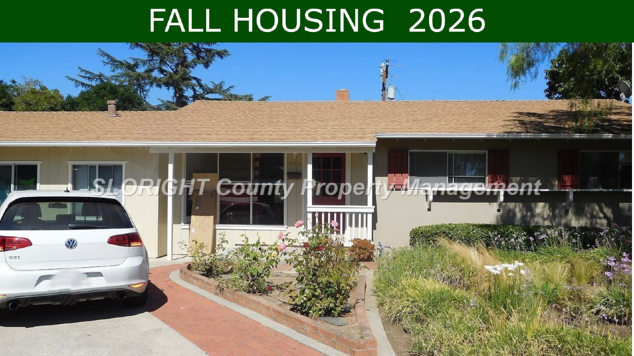 FALL HOUSING 2026 SEE FALL HOUSING FLYER (read before applying): https sloright com students-fall-housing-2026 FALL HOUSING: Please apply first, then showings will be scheduled for chosen groups. This 5 bedroom / 2 bathroom home is located near the Highland neighborhood close to the Santa Rosa entrance for Cal Poly and Cuesta College. Only a short walk to public transit that can take you downtown or to campus. Home features plenty of windows that provide natural light, fireplace located in the living room, as well as a spacious kitchen with dishwasher, refrigerator and gas cook top. The home also features a nice backyard patio, perfect for entertaining. Owner to provide a gardener. 12 month Lease. No pets. No smoking is allowed inside the home. The tenant is responsible for all utilities associated with the property. The owner will pay for landscaping. If selected as a tenant, a Move-in Fee of $49 per household is required. The fee covers a move-in inspection including digital records of property conditions for tenant protection. DO NOT DISTURB CURRENT TENANTS. A showing associate from our company must be present to show you around the home. If your group is chosen for a property, we will schedule a time where everyone in your group will have to view the property in person before a lease is written. Please carefully read the Fall Housing Flyer BEFORE applying to ensure you submit everything correctly. The flyer is located at the top of the property description and the "Rental Search" page. Princeton Place, San Luis Obispo, CA 93401 CA BRE Broker's Lic # 01876023