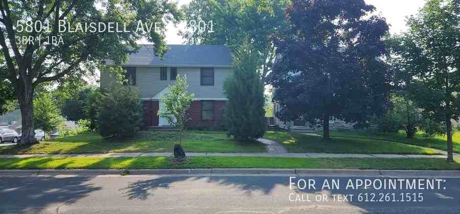 Laundry, Garage, 3 bedroom Unit of a Duplex- Minneapolis Gorgeous 3 bedrooms, 1 bath unit of a Duplex building in Minneapolis. Unit has hardwood floors, with lots of windows to let in natural light. There is a cute patio area great for bbq or entertaining guests. Kitchen has beautiful white cabinets and countertop with stainless steel appliances including overhead Microwave, Dishwasher. Unit Comes with 1 Garage Tenants in this unit are responsible to do Snow for the property. The other unit is not responsible for it. Owner does Lawn care. Utilities paid by tenant- Electric, Gas, Cable/Internet, + 60% Water/sewer/Trash. (TV wall mount stays in the house- owner installed that) TO SCHEDULE SHOIWNGS, COPY/PASTE LINK TO YOUR BROWSER: https showmojo com l ae567d5027 5801-blaisdell-ave-5801-minneapolis-mn-55419 Rental criteria: Household rent to income ratio=35% No felonies within 7 years No evictions within 2 years Must view the unit in person No history of missed payments/delinquents Application fee is $70 per adult/nonrefundable Max tenants= 4 Utilities paid by tenant- Electric, Gas, Cable/Internet, + 60% Water/sewer/Trash. (Tenants in this unit do Snow Removal for property) Owner does Lawn Care Pet fee: 1 dog $30/month, 1 cat $25/month. All pets must go through petscreening. com