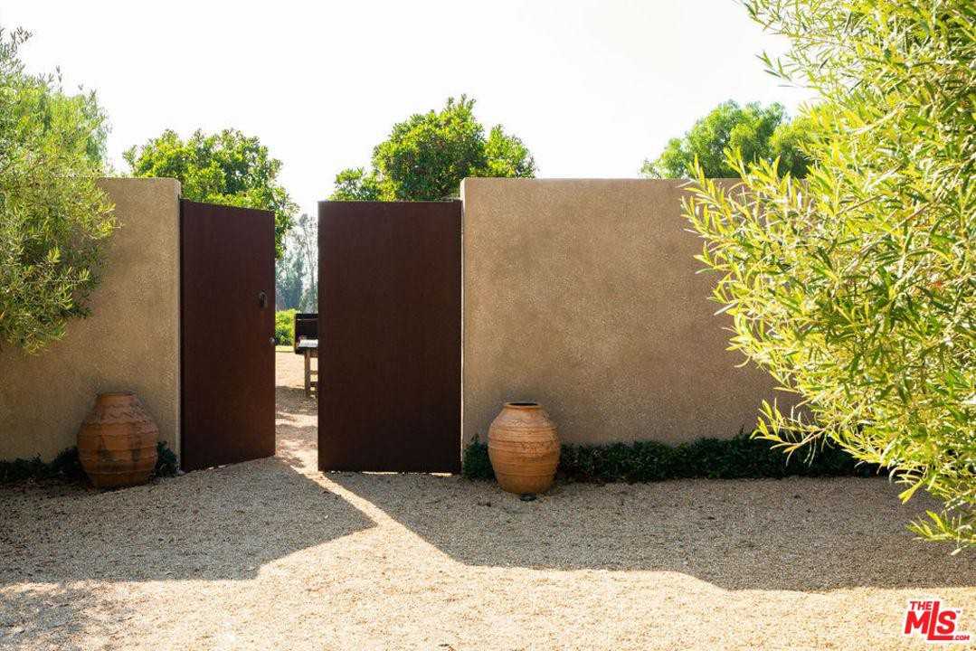 Magical, ocean view compound, with furnished 2 bed, 2 bath CA bungalow. Saltillo tile floors, wood burning stove, light, white interior, open flr plan, great indoor/outdoor flow, surrounded by olive trees and vineyards. Kitchen w/ Viking Stove + stainless steel apps. Redone bathrooms with subway tiles and European minimalism. Beautiful master w/ cedar lined closet. Sprawling courtyards, outdoor BBQ kitchen, long table for dining al fresco, great for entertaining. Multiple patios and seating for relaxing, stargazing or sipping wine while watching the sunset. Detached out buildings include a studio + gypsy caravan, perfect for meditation or yoga rm. Outdoor shower and bath to rinse off from the beach. Situated on 1.8 park like acres w/ mature landscaping, succulent gardens + large green lawn, this enchanting oasis will calm your senses and get your creative juices flowing! Gated and private, min. to schools, Zuma beach, Paradise Cove, wine tasting, shopping and dining. Easy access to 101 Freeway and PCH