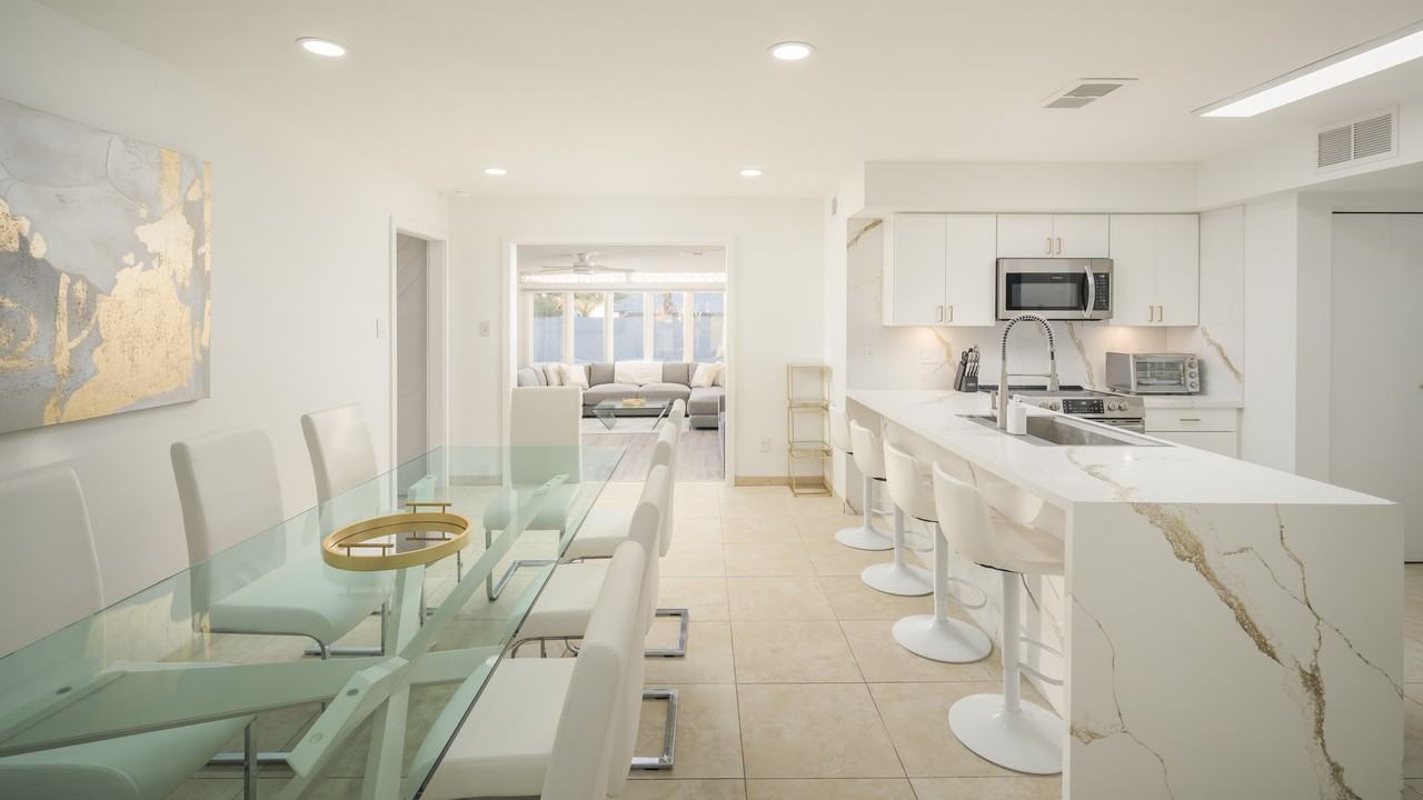 Spacious, private, & fully equipped. This 4 bedroom/3 bathroom luxury home sits on a large corner lot near Old Town Scottsdale & shares no walls with neighbors. Amenities include 7 beds (3 king- 3 twin- 1 fold out queen), 5 big smart TVs, 5 fans, 4 walk in closets, jetted tub, fast WiFi, cable, work area, USB outlets, washer & dryer, light up bathroom mirrors, huge dining table, stocked kitchen, abundant free parking, private yard with diving pool, loungers, outdoor tables, & BBQ. Fully furnished. Tenant pays utilities (usually they are $200-400 electricity, $100-200 water+trash, $200-$250 internet+tv, $165(winter/fall/spring)-$270(summer) pool maintenance, $80-$160 yard maintenance). Potential tenants are welcome to try a paid "test stay" for as short as 1 night prior to committing to a long term lease. PLEASE REACH OUT IF INTERESTED IN SHORTER THAN MINIMUM 1 MONTH STAYS, IF THERE ARE "BLOCKED" DATES IN THE FUTURE YOU ARE INTERESTED IN, & ANY OTHER QUESTIONS, INCLUDING ABOUT PRICE & AMENITIES. I WILL DO ALL I CAN TO ACCOMMODATE! If you want a personalized experience where you are always put first, then this is the place for you. There are no random property management phone numbers or emails to contact. I live nearby & I put every effort into making every single stay just how I would want it - stress free. I have been traveling since before I could walk & I’ve learned from my good & bad experiences to create a place that will provide unforgettable stays & unparalleled customer service. Amenities breakdown: -4 total bedrooms, each with a walk in closet -7 beds total: 3 king beds (mattresses are medium firmness), 3 twin beds (mattresses are medium firmness), 1 fold out queen bed (3” Tempurpedic Serenity mattress, soft). Bedroom 1 has a king & a twin bed- Bedroom 2 has a king bed- Bedroom 3 has 2 twin beds- Bedroom 4 has a king bed- Living room has the fold out queen bed. -3 full bathrooms (3 have shower heads, 2 have tubs, 1 of the bath tubs is jetted) -5 large TVS: 70” smart TV in living room- 65” smart TV in bedroom 1- 55” smart TV in bedroom 2- 55” smart TV in bedroom 3- 65” smart TV in bedroom 4. Every tv has cable, is connected to the internet, & can use streaming apps. Note, the TV in bedroom 4 & the living room TV can be viewed simultaneously, which is perfect for watching multiple sports games at once. -WiFi is high speed 300 MBPS download -the nightstands in 3 bedrooms have outlets & USB plugins. The house overall has many USB outlets (USB C & USB A in addition to traditional plugs) to maximize convenience when charging devices -washer & dryer are included along with laundry detergent, bleach, & dryer sheets -a Keurig Duo (brews Kcups & pots of coffee) is provided along with Kcup coffee, sugar, sweeteners, & creamer -large & individual toiletries are provided (large shampoo, conditioner, body wash- small shampoo, conditioner, body wash, lotion, makeup remover wipes, tampons) -the kitchen has plates, bowls, whiskey glasses, water glasses, wine glasses, & large coffee mugs (16 of each of these), as well as silverware for 16 & a variety of cooking utensils, pans, pots, etc -the oven is capable of air frying -hair dryers, hair straighteners, a curling iron, clothing iron, & ironing board are provided for guest use -large outdoor grill & grilling utensils are provided This new modern luxury oasis is in a peaceful, safe, walkable neighborhood & surrounded by the best Scottsdale has to offer. Old Town Scottsdale is just minutes away ..