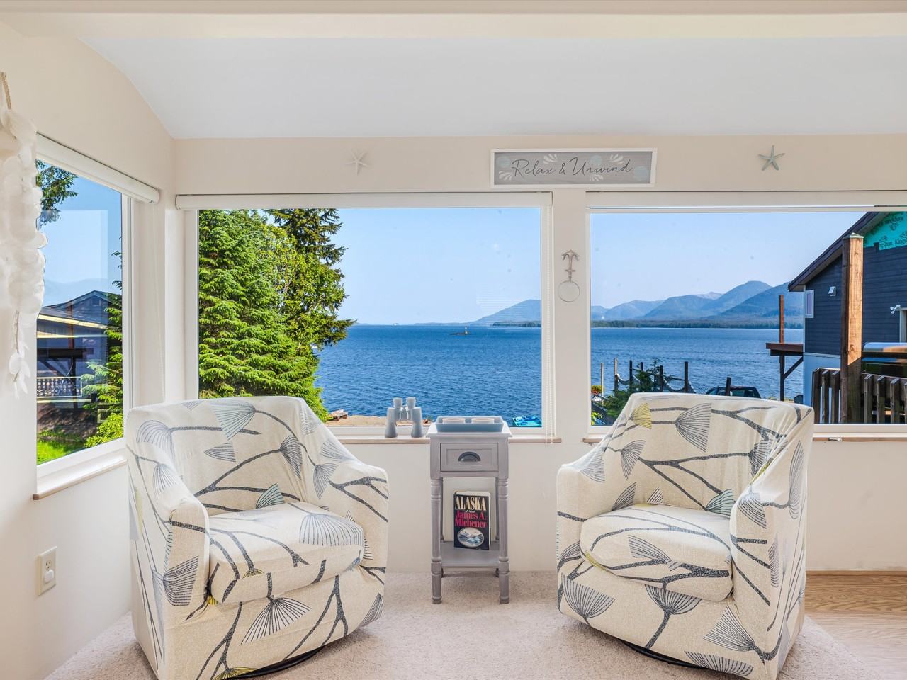 Waterfront, Fully Furnished Available October 01, 2027. 3 Bedroom, 1 Bath Waterfront Vacation Rental - Darling vintage cottage style home. Large open kitchen, washer/dryer. Completely outfitted; dishes, linens, towels. Everything included; utilities, internet, cable. Breathtaking views! Watch the eagles, whales and ships passing by. 5 miles south of town. $3,500.00 monthly with a minimum 6 month lease, shorter-term and rates may be available. Call or email us for rates and availability. Premier Rentals (907) 617-9194 in Ketchikan, Alaska.