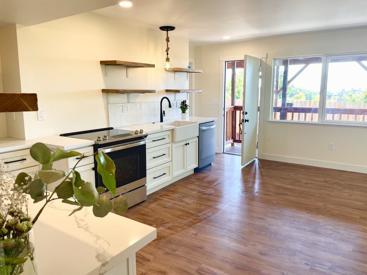 Luxury, light-filled California living in the hills with Mt. Tam views, 1 block from Wildcat Canyon Regional Park. Ideal for gardeners, hikers, bikers, or bird watchers. Newly constructed in East Richmond Heights, in El Cerrito School District. Rare, permitted ADU with its own address and private gated entry independent from the primary unit. Enjoy indoor-outdoor living with a fully-fenced yard, landscaped with drought-tolerant plants, including mature lime and avocado trees. Frequented by hummingbirds, monarch butterflies, doves, and songbirds. Large sunny garden planters for your herbs and veggies. Enjoy cooking out in your grilling area, and dining al fresco on your private patio while watching the sunset over Mt. Tam, or dine inside with the same sweeping views from your expansive living room window. LOCATION: Walk 1 block to Wildcat Canyon Regional Park (picnic areas, playground, cow pastures, creek, and hiking/biking trails connected to Berkeley hills' Tilden Park). COMMUTE: 2 miles to EL Cerrito Del Norte BART Station. 35-minute BART ride to downtown San Francisco (Powell Station). 11-minute BART to downtown Berkeley. 4 blocks to I-80 freeway. SCHOOLS: El Cerrito School District Multiple toddler-care / preschools within walking distance (renter to verify schools): Little Blue House, St. David's, Skytown preschools. AMENITIES: professionally designed open-floor-plan- kitchen has brand new stainless steel appliances including dishwasher- farmhouse sink- white ceramic tile backsplash- and professional lighting throughout interior and exterior. Front bedroom has walk-in closet and Mt. Tam views. Back bedroom has large window with evergreen tree views, desk/dresser nook, and closet. OPTIONAL BONUS SPACE: Option to rent an adjoining bonus room with mountain views as an additional scenic workspace or storage (separate entry) OPTIONAL WASHER/DRYER: landlord will furnish and maintain in-unit washer and dryer for $40/month add-on. Or bring your own washer/dryer (bathroom contains a generously sized laundry-nook with laundry hookups). PRIVACY: Feels private and independent from the main house above it, due to the private gated entry from the street, it's own mailbox and address, no windows or doors facing the street or neighbors so that no one else walks by your windows or doors, and professional sound insulation. Stays cool during heat waves due to being the lower unit of a 2-unit property. TERMS: 12-month lease. Credit, income, and criminal background check. Pet-friendly landlords. Lease start date of Aug 4 or later. VIEWING: Touring by appointment only. Still under construction until July 30. Please do not disturb without an appointment. Text or email for a tour appointment. More photos of exterior coming soon, after renovation work is complete (exterior painting).