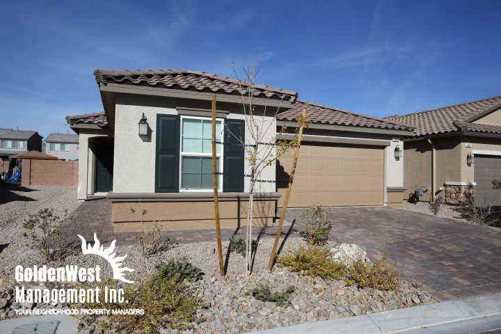 This must see home is located in a cul-de-sac within a gated community minutes from the I-215W off ramp and Russell Rd. The large tiled living room is located next to the kitchen which features a large kitchen island, all granite countertops, stainless steel appliances and a large pantry along with many upgrades. The master bedroom is separate from all other rooms is fully carpeted and features a large walk-in closet while the master bathroom features his and her sinks and a large shower/tub combo. All secondary bedrooms are large sized with large closets for storage. The enormous backyard is perfect for entertaining friends and family with a covered patio, pavers, putty green and gorgeous landscaping along the walls. A full size washer and dryer are included. Sorry, no pets allowed. This home won't last long so call for an appointment today!