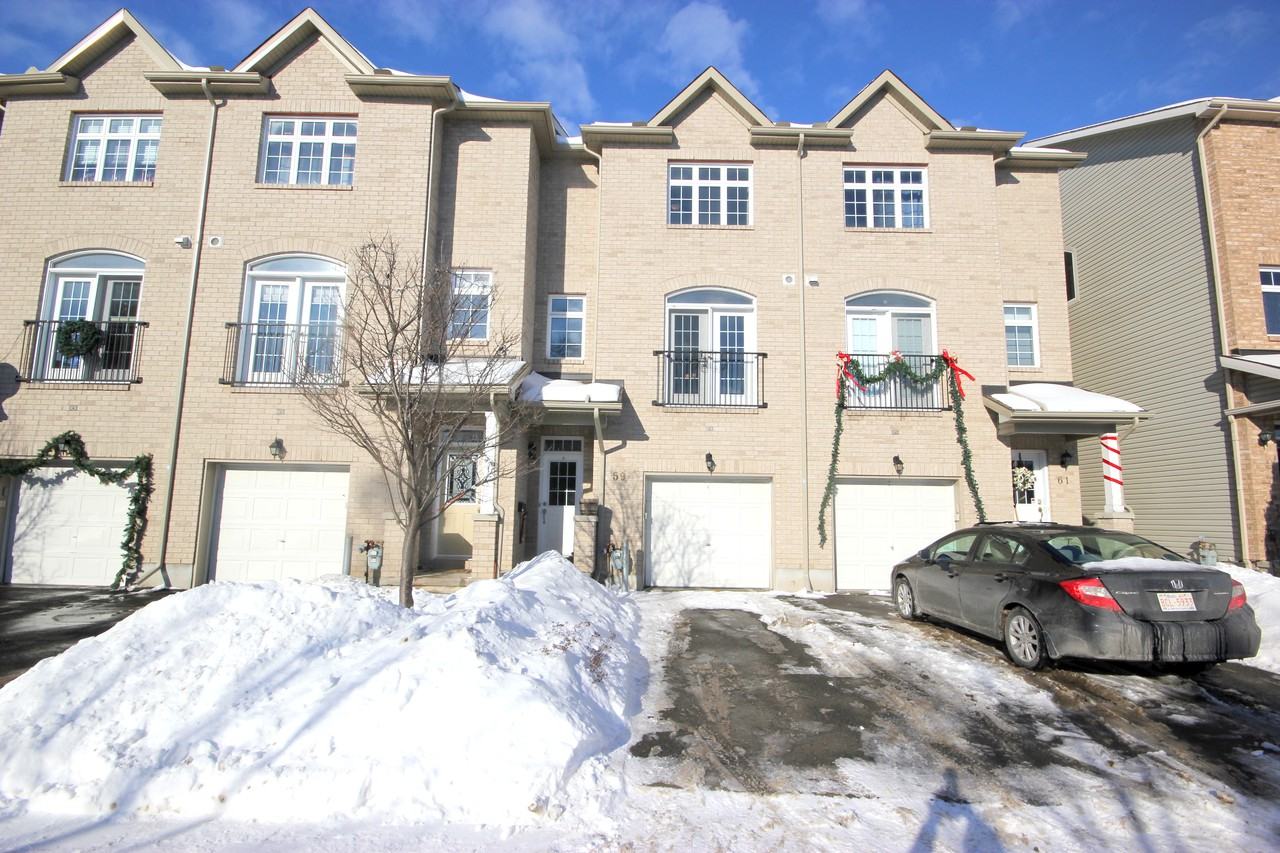 Ottawa, Nepean (Leslie Park). Executive Townhouse for rent available July 10th! This modern and bright home features 3 bedrooms, 2.5 bathrooms. Main level with den or third bedroom, powder room, walk-out to private balcony and backyard backing onto a wooded ravine. Single car garage with automatic opener. Second level boasts hardwood floors, living room with gas fireplace, dining room and upgraded kitchen w/all appliances and balcony perfect for BBQing! Third level with master bedroom w/wall to wall closet and 4pce ensuite. Secondary bedroom of good size. Basement is unfinished, perfect for storage and includes washer/dryer. Central Air. Snow clearing, Grass cutting and HWT Rental included.Transit, parks, trails, shopping, restaurants nearby.