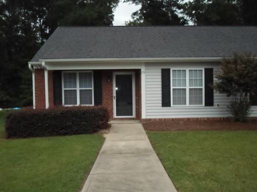 Nice two bedroom two bath one level duplex. Open floor plan. Laminate flooring in living room, bedrooms, and hallway. Driveway parking for two cars. Nice covered back porch overlooking green space. Large storage room. Close to Hwy 70 and I-95.