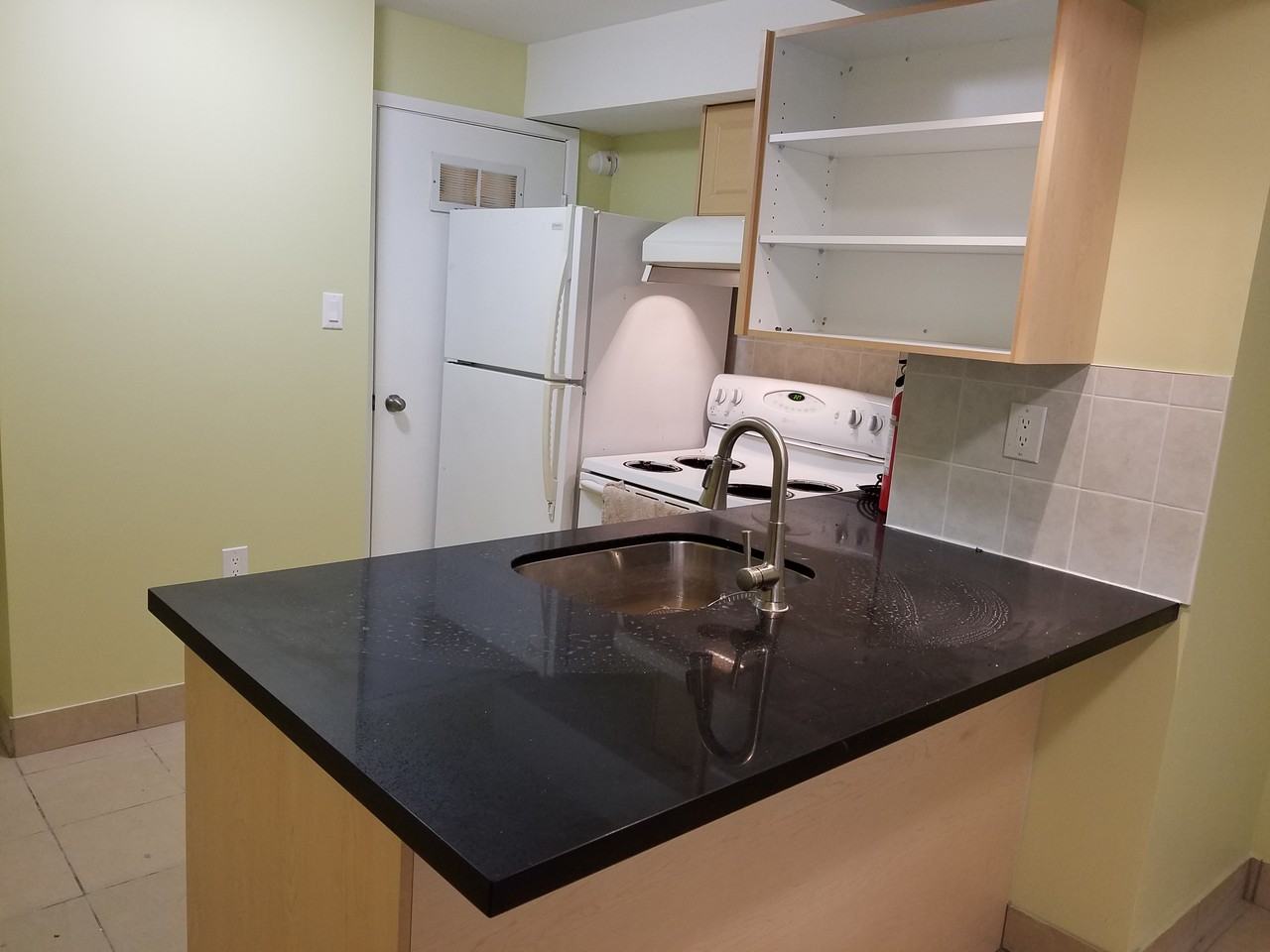 newly renovated basement apt with eat in kitchen counter, nice and bright living room, and 3 large bedrooms. Ideal for UT student, on 24 hours streetcar route or with short to subway station. rent si $1800 per month, all inclusive except internet, phone and TV cable. On site coin laundry. showing daily between 1-2pm, Please call at around 11am to confirm the same day appt at 6477138118.