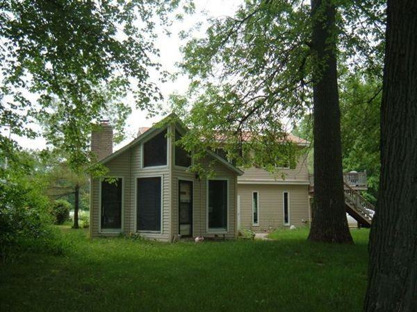 Unique home on Potter Lake near golf course. Home has 2 complete kitchens, 3 bedrooms and 2 and 1/2 baths. This could be split with one unit being the downstairs with one bedroom and the upper unit with 2 bedrooms. There is a first floor laundry room. There is a large deck that overlooks the lake. The fishing is great and there is a dock for your boat. There is even a sink in the 2 car garage to clean your fish. The large deck makes a carport for 2 additional cars if wanted or needed. The home has central air and all appliances are included. There is a gorgeous marble fireplace for those cold winter nights. This home is on a private drive and quite secluded. Many other ammenities. If you are taking care of an elderly parent who can still maintain some independence this is a perfect solution so that caregiver can have privacy and person who needs some help can maintain most of their independence.
