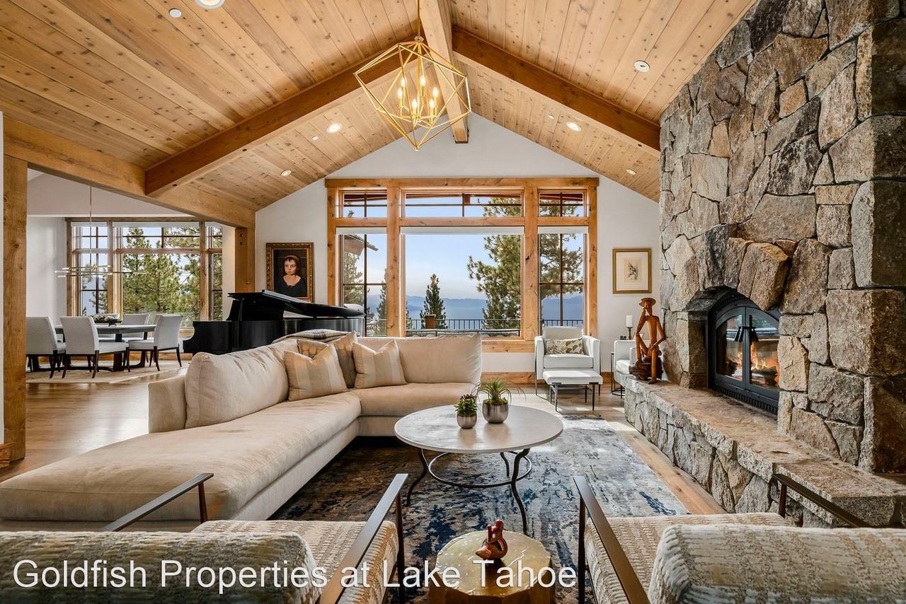 Monthly Rental with Lake Views - Monthly Rental: Quiet 3 story cul-de-sac home extensively remodeled and professionally furnished with beautiful panoramic lake views from almost every room on every level. This quality-built home has Forest Service lots on both sides for complete privacy. The property is on the downslope for ease of entry. Main level has master Suite with Fireplace, Living Room w/ Fireplace & vaulted beamed ceilings, Kitchen, Dining, Garage, & wrap around deck. House fitted with Hunter Douglas remote controlled shades & central vac. Tesla Power wall backup power, A/C, Humidifier, Heated stone driveway and custom finished Garage Mid-level has 3 bedrooms (1 dedicated as Study), 3 baths, Family/TV room with Fireplace, Wine room, Laundry, Sauna & Hot tub on deck. Lower level has wet bar Game room with pool table, TV & French doors to walk out deck w/lake views, bath, exercise room & Bunk room. No Pets Allowed