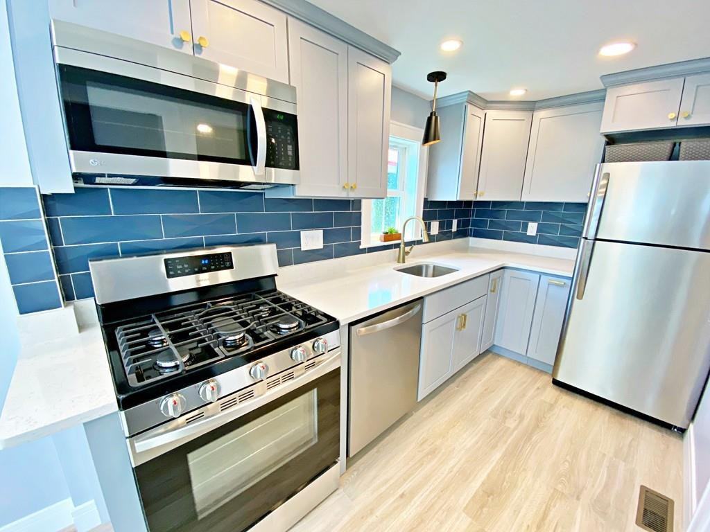 Available 6/1, a truly one of a kind 1 bd/1 ba bungalow located steps from amazing parks and water views. Completely remodeled, this brand new condo quality rental features high end Pergo laminate floors, a beautiful kitchen with quartz countertops and stainless steel appliances (incl a full sized dishwasher and garbage disposal), vaulted ceilings and skylights giving this unit a bright and airy feeling. This home lives way larger than its square footage. Beautiful new bathroom featuring stackable washer/dryer, a standing shower and stylish finishes. Private outdoor space available to put a grill and a few chairs for summertime barbecues. 1 deeded parking space! WiFi included! No need to worry about wintertime parking bans. 5 minute walk to the 712 bus to points in Winthrop as well as Orient Heights MBTA Blue Line T Station. Don't miss this opportunity to live in this amazing new home! *Note - Property exterior not yet complete. Work to be completed prior to 6/1*