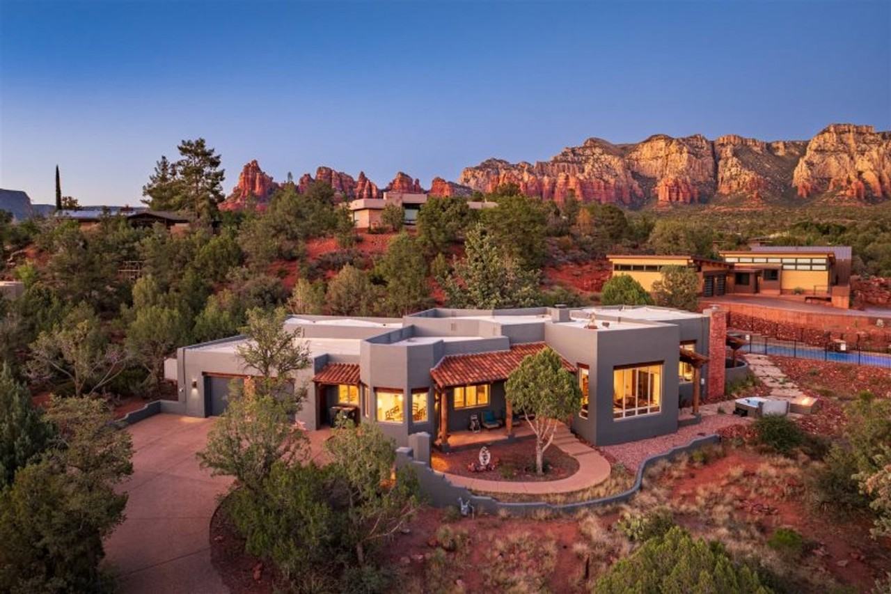 Nestled on a private lot in the peaceful Chapel Area of Sedona, Javelina House is a luxury desert oasis that blends natural beauty with modern comfort. Boasting 3,155 sq ft of well-appointed living space, a private salt pool and hot tub, and panoramic red rock views, this pet-friendly Sedona luxury rental offers the best of both indoor comfort and outdoor splendor. Step inside to an open-concept living space where two spacious living areas are divided by a double-sided fireplace. Warm wood-beam ceilings and expansive windows bathe the space in natural light and showcase the breathtaking Sedona landscape outside. With oversized leather sectional sofas, stylish accent chairs, a Smart TV, and plenty of space to gather or spread out, this home invites you to settle in and stay a while. The gourmet kitchen is a chef’s dream, equipped with stainless appliances, a center island, a sunny breakfast nook, and a Keurig and espresso machine for the coffee connoisseurs in your group. Whether you’re fueling up for a big hike or gathering for a dinner party, the dining area comfortably seats 8-12 guests to bring everyone together. Luxurious Outdoor Living Step outside and you’ll discover why Javelina House is truly a Sedona gem. The newly built heated salt pool invites you for a refreshing dip, while the 7-seater hot tub offers the perfect perch for stargazing after sunset. Cozy up around the fire pit with a nightcap or enjoy a morning coffee on the front patio with sweeping red rock views. With multiple seating areas, a propane grill, and a rare sense of privacy, this home makes the most of Sedona’s year-round outdoor lifestyle. 4 Bedrooms – 3 Bathrooms – Sleeps 12 Guests When it’s time to unwind, Javelina House comfortably accommodates up to 12 guests with four beautifully appointed bedrooms, including two bunk rooms that make traveling with kids or friends a breeze. The primary suite features a king size bed, cozy gas fireplace, 58” Smart TV, dedicated workspace and large windows framing iconic red rock vistas. Step out to a private patio or follow the path straight to the luxurious salt pool. The ensuite bathroom offers spa-like indulgence with dual vanities, a soaking tub, and a spacious walk-in shower with dual shower heads. A second king bedroom offers equal comfort with a Smart TV and access to a nearby full bathroom with a walk-in shower. The two bunk rooms, each with two twin-over-twin bunk beds, share a Jack-and-Jill bathroom complete with a tub and separate shower. With upscale linens, thoughtful touches, and ample space for everyone, every guest will sleep comfortably at Javelina House. Additional conveniences include air conditioning for warmer months, a full laundry room, a two-car garage, and driveway parking for two additional vehicles.