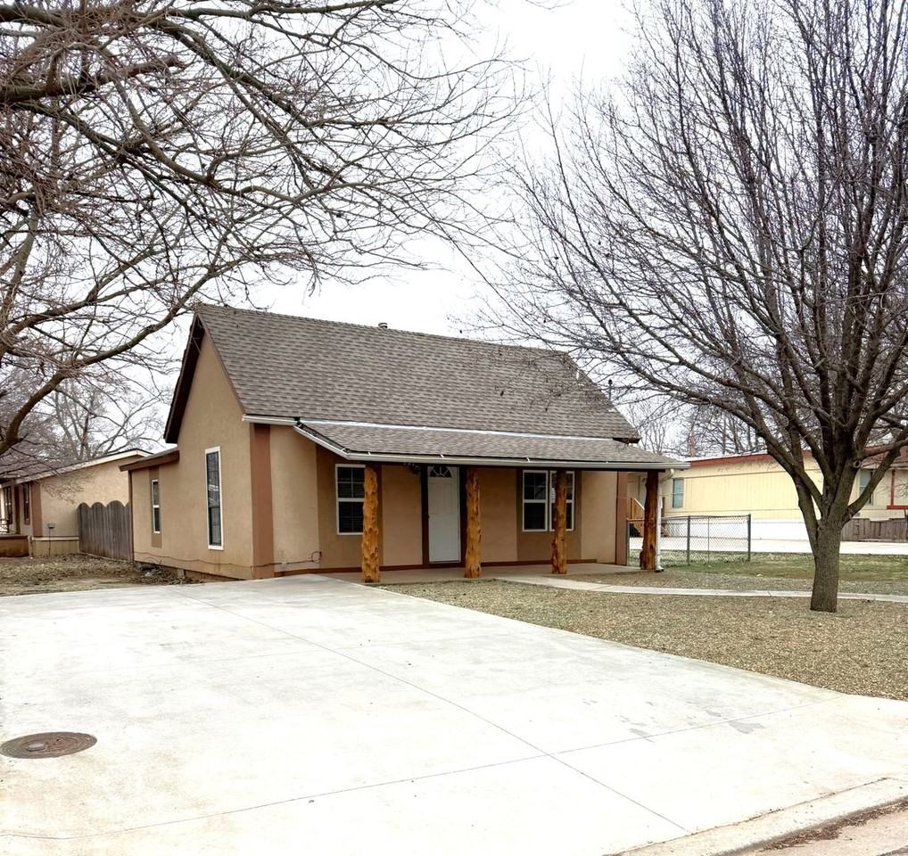 This charming stucco house with a covered front porch is located on the corner of Rainey and 5th Street. (Directly West of City Hall and Police Dept) Recently painted interior, new tile floors in kitchen and dining area and new countertops and backsplash in kitchen. Plenty of space in the kitchen for informal dining. Wall panel gas heaters and window unit AC. Yard is maintained by the owner. Tenants are responsible for all utilities. This is a no pets property.