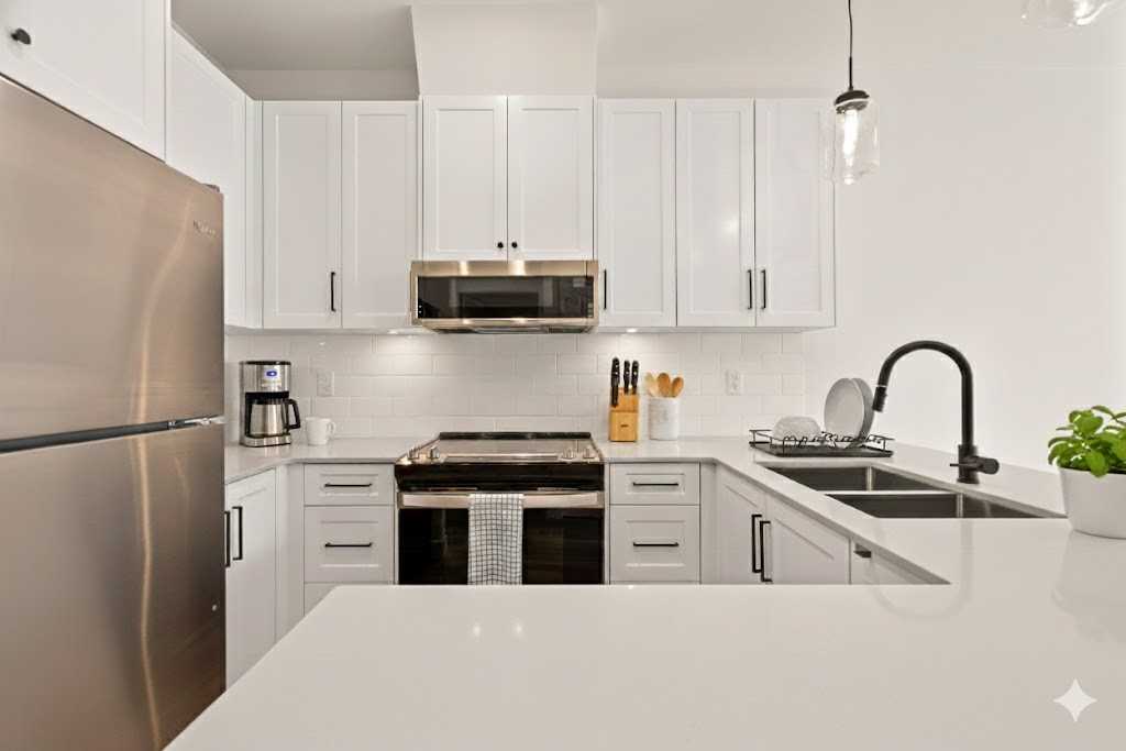 1 BEDROOM (B4) This 1-bedroom, 1-bathroom apartment spans 613sq feet, offering a perfect design to create an inviting atmosphere that's perfect for modern living. Your unit includes: •1 bedroom and 1 bathroom •Laminate counters in the kitchen and bathroom (Select units with Quartz countertops) •Full-size Whirlpool appliances (dishwasher, microwave, fridge, stove). •In-suite stacked washer and dryer •Tile flooring in the bathroom •Laminate flooring throughout •Carpeted flooring in the bedroom •Spacious balcony Apply now! These won't last long! *Photos may not be of exact unit - AI generated images*