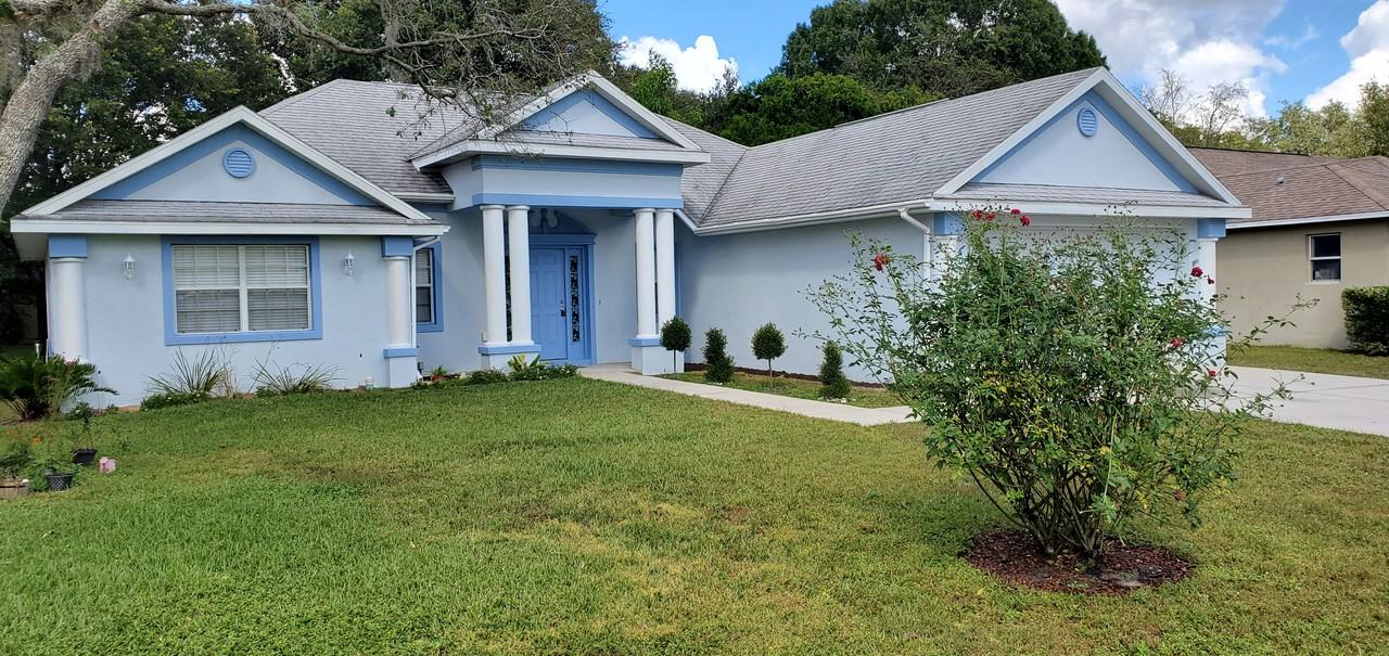 Beautiful 3 bedroom 2 bath 2 car garage home located in Whispering Oaks Estates Deed Restricted Community,This home features a living room dining room, Kitchen with a breakfast bar. Split plan, Very large master bedroom with tray ceilings large walk in closet, master bath has dual sinks garden tub separate shower. Bedroom 2 and 3 are very spacious with walk in closets. Large family bath with tub shower combo door that leads out to the covered lanai. Inside laundry room with washer and dyer hook ups and a utility tub. Spacious garage with garage door opener for your convenience, Home has all laminate wood flooring through out. You will not find a cleaner on then this one. The other perk about the is property it is centrally located to I-75 which is easy commute to Tampa, Ocala, Gainsville, As well as Orlando. Not miss out on this beauty call today for a showing. Pets with owners approval and non refundable pet fee. 1st last and security. 50.00 application fee per adult.