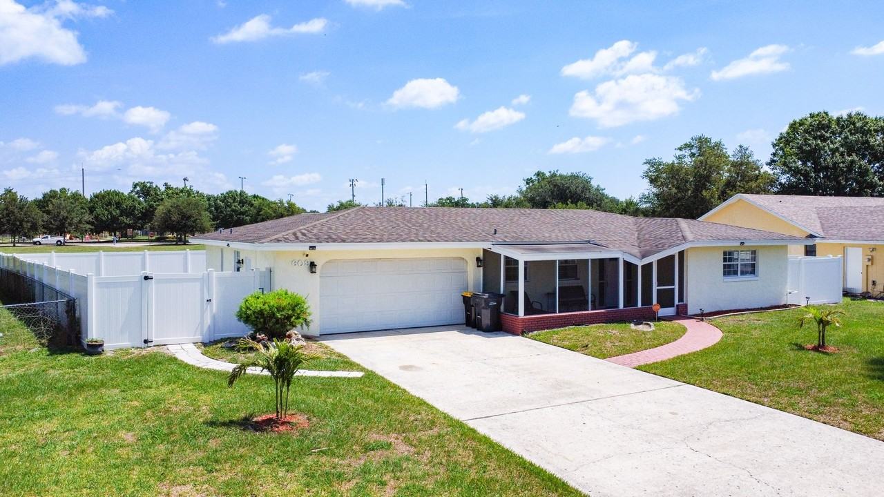 This large, all-tile home offers a comfortable and functional layout, featuring three generous bedrooms and two full bathrooms. Enjoy privacy and peaceful views with no rear neighbors and a fully fenced backyard—perfect for pets, play, or gardening. Relax or entertain in the expansive glass-enclosed Florida room, ideal for year-round enjoyment. Additional highlights include: New A/C unit Screened front porch New roof installation scheduled for this week or next Interior ceiling repairs scheduled for early July