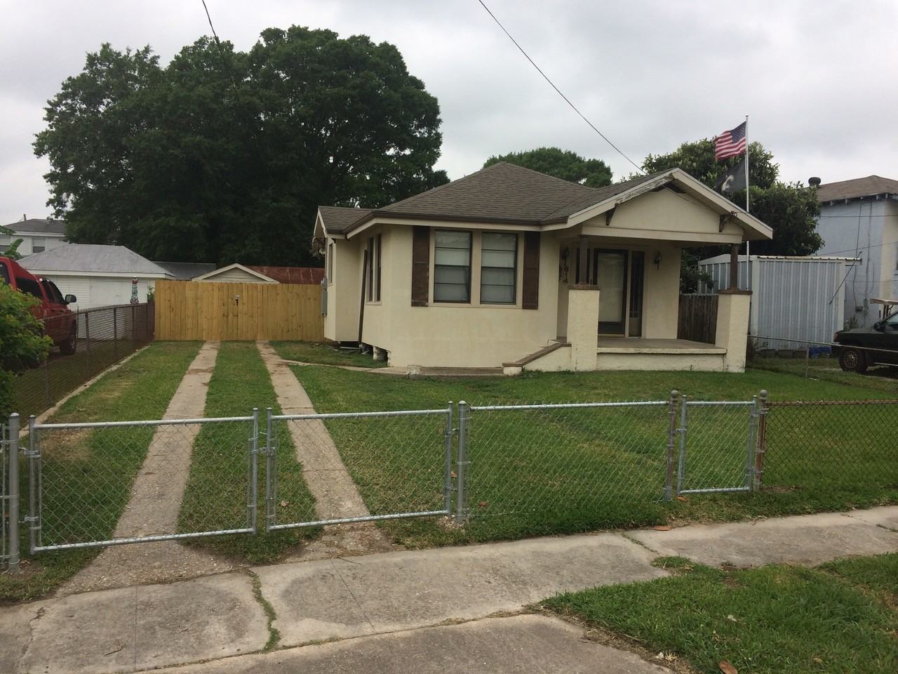 Completely renovated 1,200 sqft 2 bedroom/ 1 bath single family home in Westwego with large fenced yard and a carport and garage. $1,300 Rent, $1,300 Deposit. 1 year lease. The house is completely renovated with a new central air conditioner, updated Kitchen w/ farm sink, updated bath, storage, garage, wood look ceramic tile flooring and wood flooring in each of the bedrooms, new interior paint, off-street parking and carport and laundry room. Large Fenced Rear Backyard for Pets and/or Children. Quiet and Safe neighborhood with great neighbors. A Dog or Cat is okay with pet deposit.
