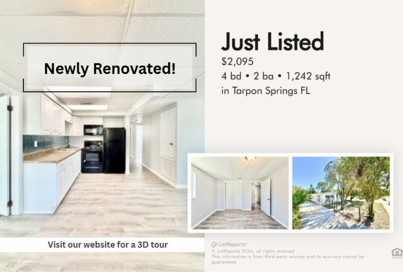 Located in Tarpon Springs near multiple pet supply stores and two dog parks within a mile, the home supports a convenient, pet-friendly lifestyle. Outdoor spaces and nearby amenities add everyday practicality, while a pet deposit policy helps keep the property pet-ready and well maintained.