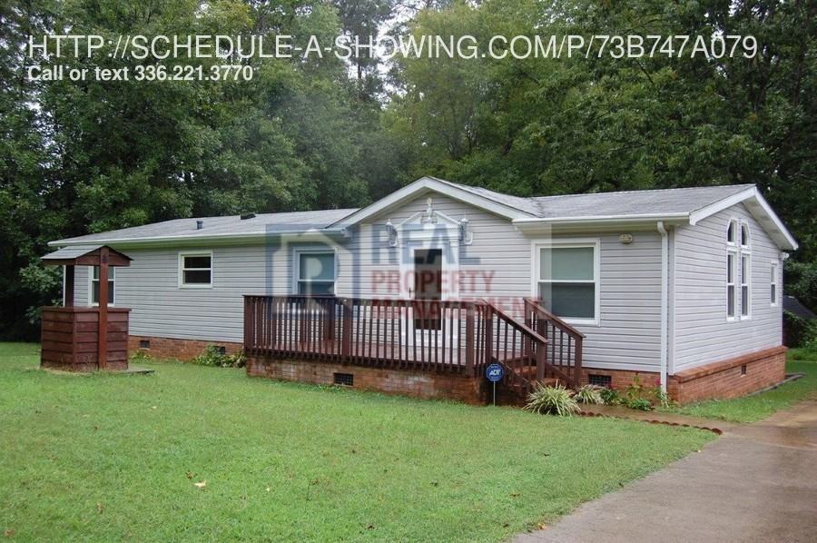 Large home w/over 1500SF and 3 bedrooms and 2 full bathrooms. Large rooms, built-in shelves & cabinetry, no carpet, fireplace, all electric utilities, heat pump. Master bathroom features tub & separate shower. Large deck on front and back, lot almost 1 acre, storage building, partial privacy fence, & paved drive. Rural setting but 20 minutes to Greensboro amenities. Appliances include: Fridge, stove, dishwasher. Sorry, No pets. Note: Maximum occupancy is 6 people due to septic permit. Security Deposit: $885, Lease Administration Fee: $885 You can view this place on your own, at a time that is best for you. To do this copy and paste the following link in your web browser: https://showmojo.com/l/73b747a079 Call us to schedule a showing today! 336-355-6688 Marketed by Real Property Management of the Triad Cats Not Allowed Dogs Not Allowed Kitchen Range/Oven Storage Building Wood Burning Fireplace