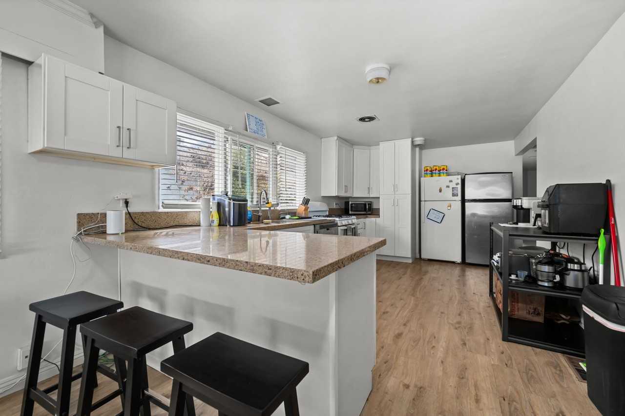 Property Features: - Spacious turfed backyard and patio - 2 kitchens! - 3 refrigerators - In-unit washer and dryer - Oversized master with walk in closet and private bath - ideal for doubling! - 2 Car Driveway - No back house! - Can accommodate 11 tenants