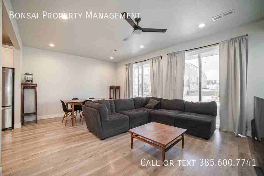 Welcome to this stunning townhome in the highly sought-after Daybreak community! Featuring 3 bedrooms, 2.5 bathrooms, and 1,660 sq. ft. of thoughtfully designed living space, this home blends modern upgrades with everyday comfort. The open-concept layout is filled with natural light from large windows, complemented by upgraded cabinetry, quartz countertops, and stainless steel appliances. Smart home devices throughout add convenience and peace of mind. Upstairs you'll find a versatile loft area — perfect for a home office, playroom, or additional living space. Enjoy a fenced private patio and an attached 2-car garage. As a Daybreak resident, you'll have access to world-class community amenities including pools, parks, walking and biking trails, and a vibrant village center. Ideally located near top-rated Jordan School District schools, shopping, and dining, with quick and easy access to Mountain View Corridor. $2,395/mo | 3 bed / 2.5 bath | 1,660 sq ft | 2-Car Garage | Available Now