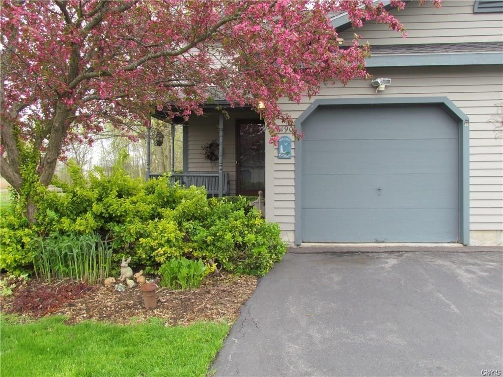 Fantastic Cicero Townhouse on a quiet cul-de-sac. Open concept layout. Enjoy the outdoors on your wrap around front porch or on the spacious back deck. Beautifully landscaped. Two story foyer with skylight invites you into this lovely home. Galley style kitchen with breakfast bar and open view of the spacious living and dining rooms with slider to the back deck and lush backyard. Updated gas fireplace warms you on those chilly spring nights. Upstairs features a large master bedroom with double closets, a spacious 2nd bedroom and full bath. Full dry basement would make a great family room space.