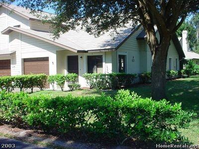 One story villa with garage, Large open living/dining room with fireplace and vaulted ceilings, large screened patio off master bedroom and guest bedroom, Breakfast bar open to kitchen from dining area, light and bright end unit, All kitchen appliances included plus full size washer & dryer, Ceiling fans throughout, Community pool and clubhouse, , lease includes water, sewer, trash collection, basic cable and lawn care. Sorry, no pets