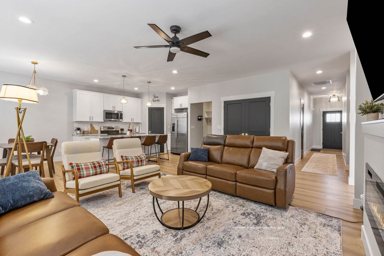FURNISHED PROPERTY WITH ALL UTILITIES INCLUDED FOR $3,000 per month. Discover luxury living in this stunning, brand-new 3-bedroom, 2-bathroom twin home, perfectly situated in the charming community of Sugar City, Idaho. Spanning an impressive 1,611 square feet, this elegant home offers a modern, open-concept design with high-end finishes and thoughtful details throughout. The spacious living area is filled with natural light, complemented by sleek flooring and contemporary fixtures. The gourmet kitchen boasts top-of-the-line appliances, ample cabinetry, and a generous island, making it an entertainer's dream. Each bedroom provides comfort and style, with the primary suite featuring a luxurious en-suite bathroom and a walk-in closet. Outside, enjoy a private yard and serene surroundings, ideal for relaxation or outdoor gatherings. Conveniently located near local amenities, schools, and a short drive from Rexburg, this twin home combines comfort, style, and functionality in a prime location. 3 month, 6 month, and 12 month leases available. Welcome to your new haven in Sugar City!