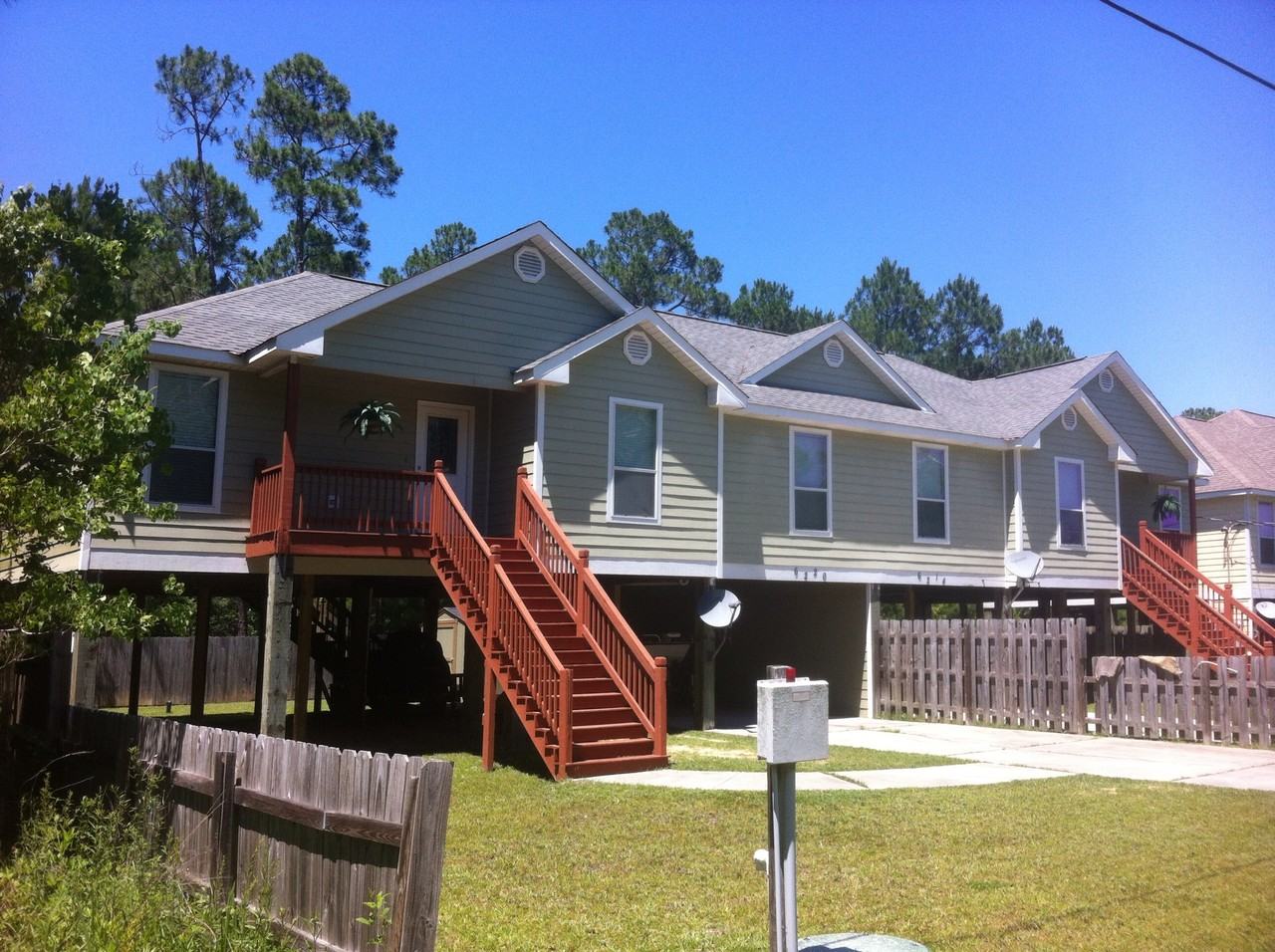 Wonderful raised duplex surrounded by trees with every window facing the woods. Total privacy yet close to shopping, beaches, churches and The Stennis Space Ctr. Slidell, LA is a quick 20 minute drive. Meanwhile, Biloxi, Gulfport and Ocean Springs are easy drives along the beautiful beach highway. Front and rear decks are perfect for viewing the stars. Covered parking and storage underneath. Property is actively managed by the owner (Chris) who lives next door. Applicants who take the time to type landlord a real message distinguish themselves. Sorry, I am not able to accept any government vouchers.