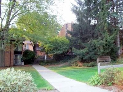 Wooded and nicely landscaped private setting. On direct downtown bus lines. Large sliding door windows with lots of natural light and nice patio. Split-level design with bedroom and bathroom upstairs. Includes heat, gas, water. You pay electric. Garage parking, dishwasher, storage, patio, porch, decorative fireplace. Coin -op laundry on site.