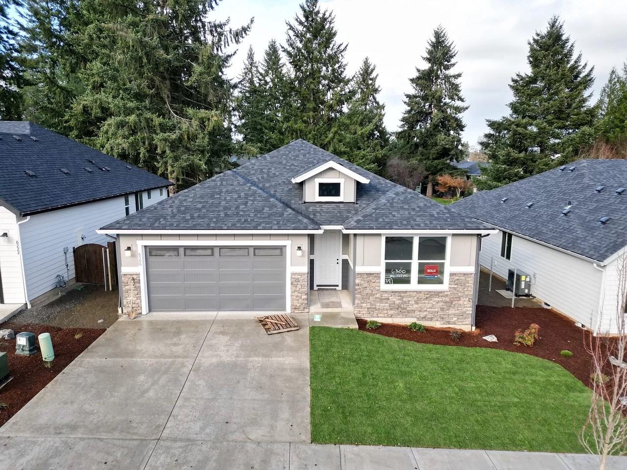 Single Level with Covered Porch and Patio! Amenities include 9ft Ceilings, Stained Cabinets, Quartz Slab Countertops in Kitchen and Bathrooms/Laundry, Stainless Gas Appliances, Full Height 3 by 6-inch Subway Style Backsplash, Under Cabinet and Pendant Lighting, Linear Style fireplace in the Great Room, Tile Bathroom Floors and Master Shower, Laundry Cabinets with Sink, Laminate Plank Flooring throughout open living areas. This home is further complete with full landscaping, fencing, a garage door opener, and an electric car charger circuit.