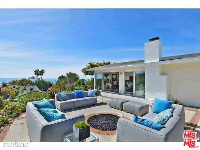 Available July 15. Entering through the front doors of this hip mid-century modern vibe home, you are quickly drawn out to the spectacular ocean and canyon views. This remodeled 3 bedroom 2 bathroom home has a wall of sliding glass doors creating the quintessential indoor-outdoor Malibu lifestyle. Ocean views from the living room, dining room, kitchen and master bedroom. The home features sleek concrete and wood floors throughout and a fireplace in the living room. The back patio has amazing ocean, coastal and mountain views and boasts an outdoor fire pit and a separately fenced-in, heated pool. Tenants will enjoy private beach club and tennis court rights. Walk to the beach club, Vintage Grocers, Starbucks, retail shops and Trancas Park. This an unbeatable location. 90265DJ16-133530. Please call 310-961-4080.