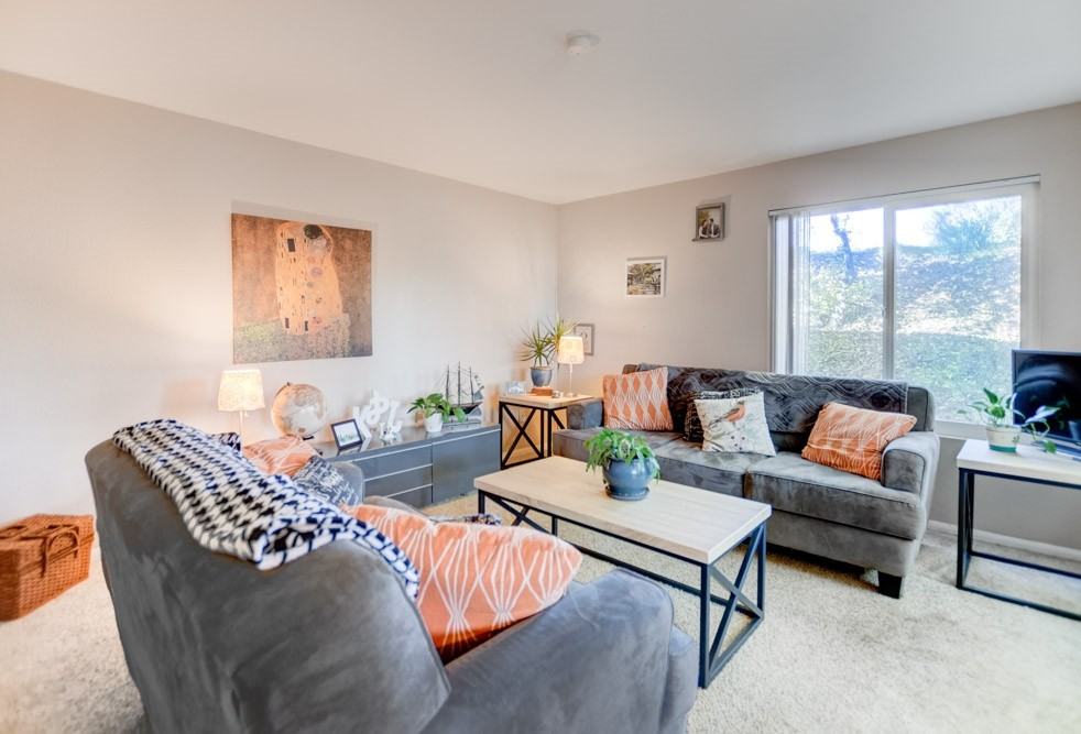 Private 2 bedroom 1.5 bath corner unit. First floor has half bathroom off the living room. Kitchen has granite counter tops with new Samsung Stainless Steel appliance. Both bedrooms are conveniently located upstairs. Recently painted outside. Complex has 3 pools. Ideal location near Sam's Club, Ross, Starbucks, 24hr Fitness, Walmart, parks and more. 1 assigned parking spot + 1 permit spot. Hurry this will not last!