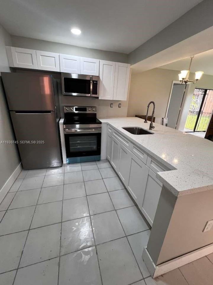First floor 2/2 in Lago Grande Condominium. Everything is brand new! Washer & dryer in unit. The remodeled kitchen features white cabinets, quartz countertops, stainless steel appliances. Tile floors throughout the unit. The bathrooms have also been remodeled. Utilities are not included. Gated community with a security guard at the entrance. Community pool, basketball courts & playground. 1 assigned parking space, 2nd vehicle parks with HOA decal + guest parking available. Commercial vehicles not allowed. Small pets up to 20 lbs. allowed. Association can take up to 15 business days to process applications.