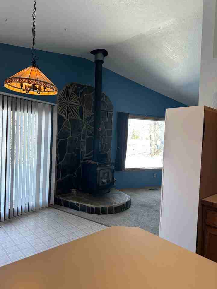 Cute 2 bedroom 2 bath home Single-level living with vaulted ceilings and lots of natural light. Wood stove for extra heat and a private, treed lot with space to enjoy. $1,800 security deposit Tenant pays gas & electric One pet on approval with $300 pet deposit