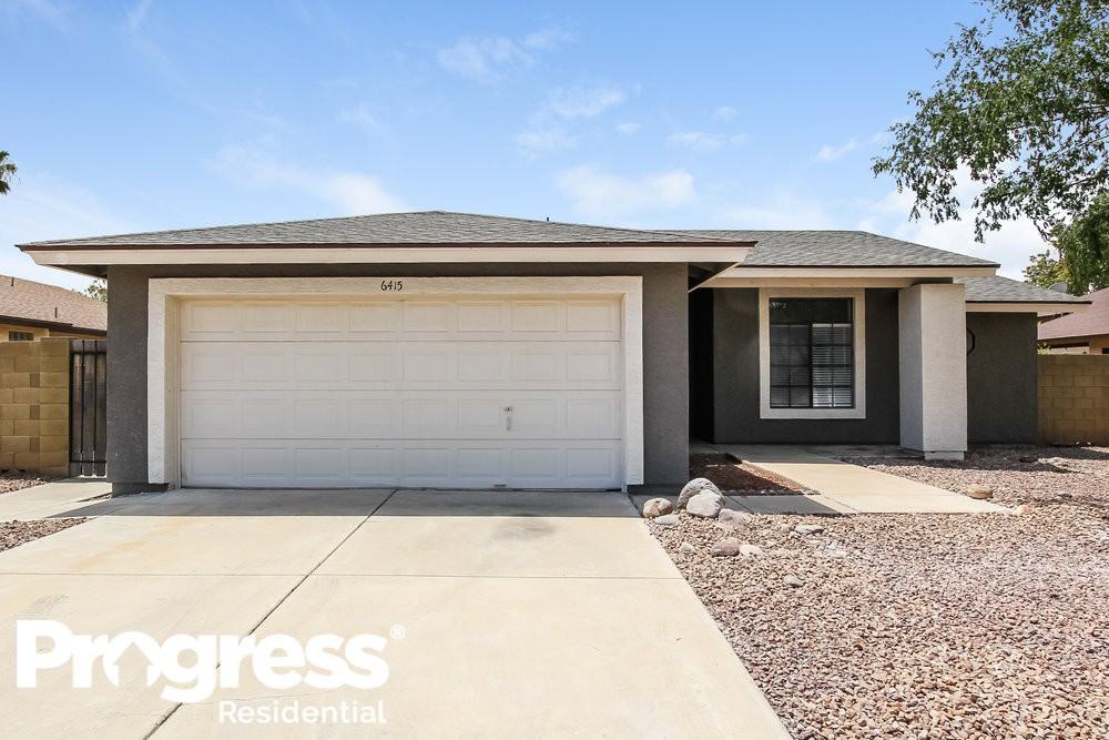 This home is priced to rent and won't be around for long. Apply now, while the current residents are preparing to move out, or call to arrange a meeting with your local Progress Residential leasing specialist today. Explore this renovated, contemporary, three-bedroom, two-bath rental home in Glendale, AZ. A white and gray exterior sets the tone for house. Enjoy a fenced-in backyard and covered patio. The living room has clean tile floors and French doors to the patio. Dark wood cabinets, stone countertops, and stainless appliances combine for a sleek, modern feel in the kitchen. The dining room has an updated light fixture and a bay window overlooking the backyard. A laundry room is next to the kitchen. The master suite delivers splendor with a vaulted ceiling and private door to the patio. Apply for this rental home today.