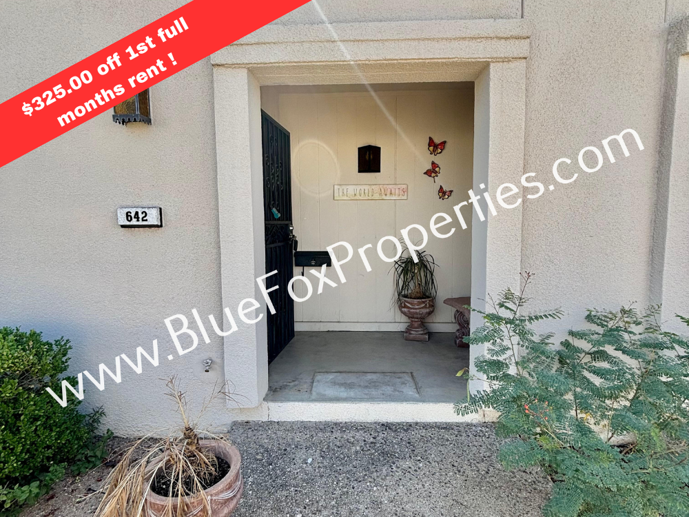 $325.00 off 1st full months rent ! This gorgeous 2-bedroom, 1-bathroom, one-story townhome in the heart of Tucson is a must-see! It welcomes you with a spacious living room with lots of natural light. The kitchen has tasteful tile countertops, black appliances, and a dining area. This home also features great-sized bedrooms, tons of storage space, and an extended-length garage with a washer and dryer included. Schedule a showing today! This home is available for move-in within 3 business days of an approved application. The rental rate is $1,290.00 per month, and the security deposit is $1,290.00 There is a $125 tenant administrative fee, per tenant or cosigner. If pets are allowed and approved, there is a monthly pet fee ranging from $25 - $100 per pet, plus a one-time $150 non-refundable pet fee, per pet. The monthly fee is determined by PetScreening dot com. Most homes allow 2 pets unless otherwise stated in the property description. Our residents are automatically enrolled in our Resident Benefit Package. The cost of this program is $35 per month. For more information regarding this program, please go to bluefoxproperties dot com to the For Residents tab on the banner and click on the Resident Benefit Package on the drop-down menu. Every adult age 18 and over must complete an application. The application fee is $55 per adult. The application process includes credit, criminal, previous rental history, employment, and income verification. Residents are required to obtain and keep liability and renter's insurance in full force and effect during the full term of the lease agreement and any subsequent renewals. The coverage must include at minimum the following: $20,000 renter's content coverage $100,000 tenant liability insurance coverage $10,000 renter's bodily injury coverage Our residents may purchase their own policy as long as Landlord and Agent are listed as "additional insured". It is important to note that "additional insured" and "additional interest" are not the same thing. If the policy provider will not name Landlord and Agent as "additional insured", our residents will have to find an alternate provider that will. Our residents must provide a copy of the policy to Blue Fox Properties, LLC prior to lease signing and prior to signing any lease renewal. If the copy is not provided prior to lease signing, Tenant will automatically be enrolled in the insurance policy provided through Blue Fox Properties, LLC and charged accordingly. The cost of the Blue Fox policy is $20. Our minimum rental requirements include the following: 1. The applicants' household verifiable gross monthly income must be 3 times the rental rate. 2. All our homes are offered as non-smoking. No smoking is allowed on the premises, inside or outside the home. 3. Reasonable credit which includes but is not limited to an average credit score of 630 for all applicants combined. Credit scores between 580-629 may be eligible to provide a cosigner to support challenged credit. 4. If this property is located within the City of Tucson, housing vouchers will be considered. 5. Applicant to provide proof that debts to previous landlords have been satisfied. An eviction can be grounds for denial. 6. No felonies for the past 10 years related to property damage, illegal substance manufacturing or distribution, or assault. Other criminal activity may be grounds for denial. 7. All pets are subject to approval. 8. No bankruptcies that have not already been discharge..