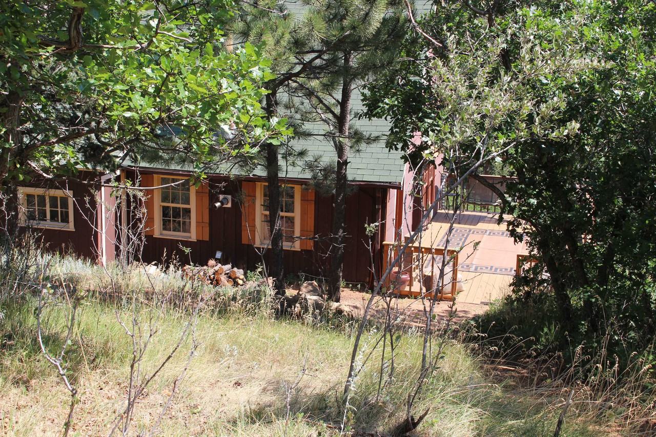 1930 Cabin in Green Mtn Falls, Nested in the Trees. Home features 1 Large Loft/Bedroom on upper level and 1 Long Bedroom (no door) on main level off Living room. Please note this home does not feature a Furnace, Heat source is Electric Baseboard heating and Pellet stove. Home temp. must be maintained during the winter so home does not freeze. Also road to home is all dirt road and large hills, best for 4x4 Vehicle especially in winter time.