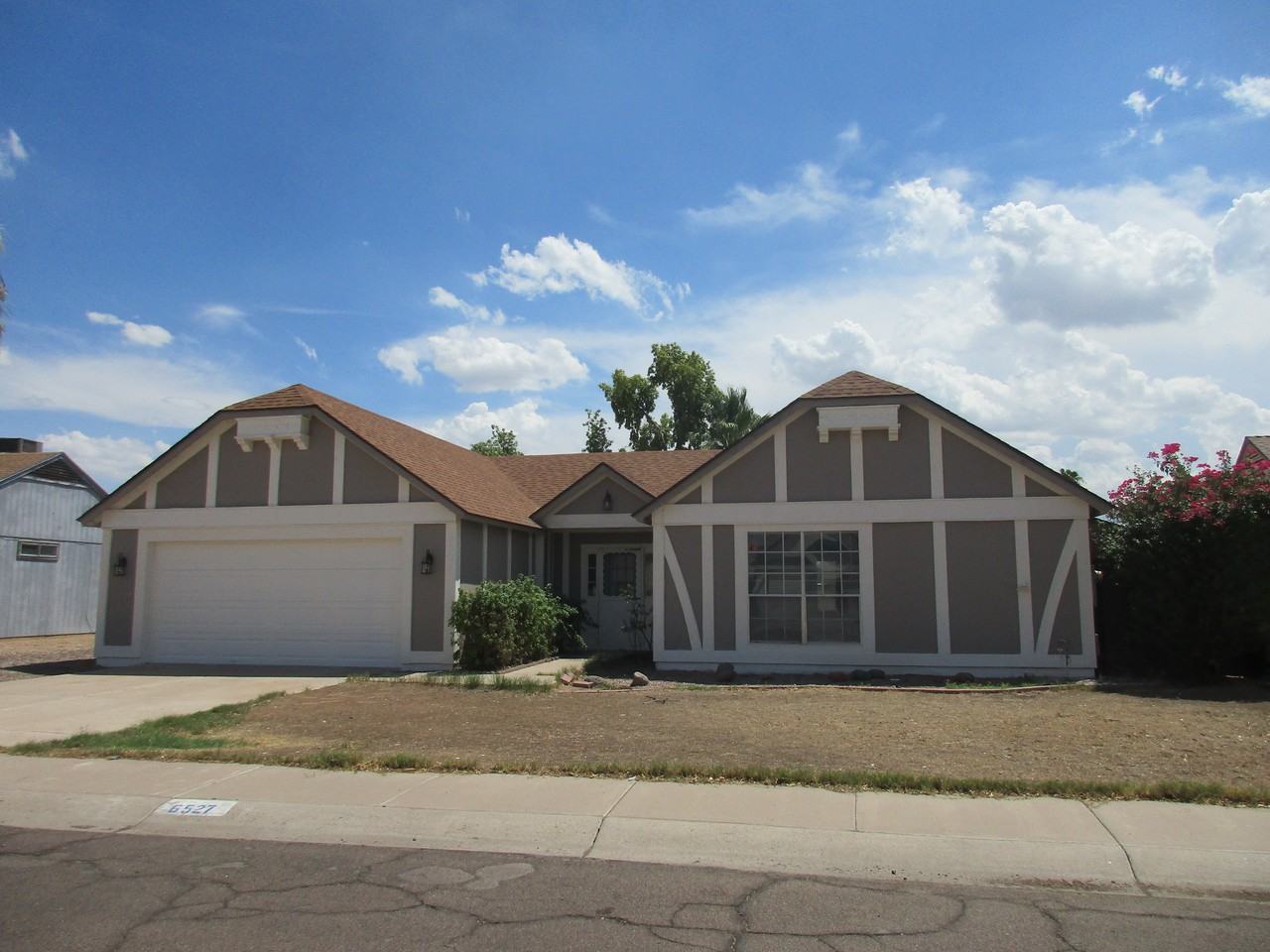 3 bedroom / 2 bath home with 1,764 square feet in Glendale. Interior of the home offers a formal living room with fireplace combined with a formal dining room, family room right off of kitchen along with dining area. Master suite has private bath with double sinks. Guest bedrooms have walk in closets, interior washer and dryer hookups. Tile and carpet floors, vaulted ceilings, new paint, ceiling fans and window coverings. Large fenced in backyard, grass in front yard, two car garage with opener and work bench. Great area closet to Arrowhead Mall, tons of restaurants, entertainment, and shopping near by. Owner will allow one Dog with their approval. Schedule a self guided tour today www rightkeypropertymanagement com Call or text Stacia for details 602-672-1787 $50 application fee each adult. Deposit is equal to one months rent plus a $199 administrative fee. Tenant pays all utilities. 5% rental tax/admin fee on top of base monthly rent.