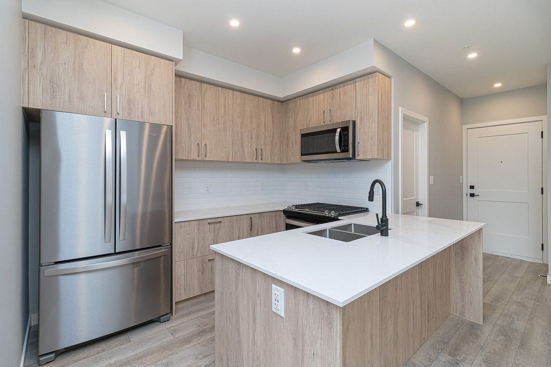 Step into this beautifully designed two-bedroom, two-bathroom condo in The Grand, Langford's newest boutique residence. Available immediately, this brand-new home offers a thoughtful layout with natural light, modern finishes, and a calm, neutral palette that’s easy to make your own. The open living space flows from the sleek kitchen with its warm wood cabinetry and stainless steel appliances to a spacious living area anchored by an electric fireplace set into a striking tile feature wall. Large windows and sliding glass doors open onto a generous balcony—perfect for quiet mornings or relaxed evenings. The primary suite includes a walk-in closet and an elegant bathroom with a glass-enclosed shower. A second bedroom and full bathroom offer flexibility for guests, a home office, or a family. With durable flooring throughout the main living spaces and soft carpeting in the bedrooms, comfort meets practicality at every turn. Enjoy the convenience of in-suite laundry, secure bike storage, a fitness room, and a shared outdoor area for residents. A covered parking stall is available for $100 per month. The E&N Trail is just steps from your door, and you’re only a short walk from downtown Langford with more than 20 shops and restaurants to explore. Hot water is included; all other utilities are the tenant's responsibility. Well-behaved pets are welcome with a deposit and some restrictions. Rent is based on 2-3 person occupancy. What's Nearby: Millstream Elementary – 1.6 km Spencer Middle School – 2.8 km Belmont Secondary School – 2.3 km Westshore Town Centre – 1.8 km Costco – 1.5 km Thrifty Foods – 1.4 km Langford Lake – 2.5 km YMCA-YWCA Westhills – 3.2 km If you are interested in inquiring, renting this suite, and/or booking a viewing, please email **** with a brief description of yourself and the best contact info to reach you at. Property managed by SANPRA REAL ESTATE INC