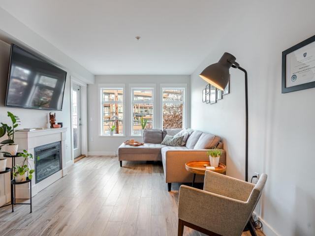 Beautifully renovated 2 Bed 2 Bath condo right in the heart of Goldstream! The elevator takes you to the Top Corner unit where upon entering you will love the timeless style and updates throughout! The attached electric fireplace with a detailed mantle sets the focal point of the bright living room with access through the french door to the deck. Separate dining with a built-in bench creates that perfect niche. The stunning new traditional white kitchen is built to optimize storage complete with pantry, quartz counters, granite sink, and newer appliances! Primary bedroom with the BEST walk-in closet, large built-in drawers, and organizers. Both bathrooms have bathtubs ! Fitness area, roof top atrium, storage locker, and underground parking. In unit washer and dryer. Great utilization of space , lots of light and very cozy. Walk to dining, shopping, and all amenities. On bus route with a short drive to Victoria! Bonuses - Bike Storage, Free underground parking spot, Elevator(s), Fitness Centre, Roof Deck, Mountain View, one block from Royal Colwood Golf Course ! Please note the unit is not furnished, so you can make it truly your own! Near intersection of Goldstream and Millstream. The Video is for viewing but DO NOT CONTACT THE REAL ESTATE COMPANY. This video was done last year when it was purchased and we are now renting it out, just contact us directly. 236 862 3711. thx