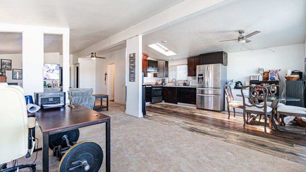 Welcome to your future home in Phelan, CA! This charming single-family residence offers a perfect blend of comfort and style, featuring two spacious bedrooms and two bathrooms spread over 1,987 square feet. The open-concept living area is designed for modern living, showcasing a well-appointed kitchen with stainless steel appliances and ample cabinetry. Skylights flood the space with natural light, creating a warm and inviting atmosphere. The living room, bathed in sunlight from large windows, seamlessly flows into the dining area, making it ideal for entertaining guests or enjoying cozy family meals. Outside, you’ll find a well-maintained yard, providing a tranquil outdoor space. With convenient parking and ceiling fans for cooling on warm days, this home offers additional comforts. Experience the lifestyle you’ve been searching for—schedule a viewing today and take the first step toward making this delightful property yours!